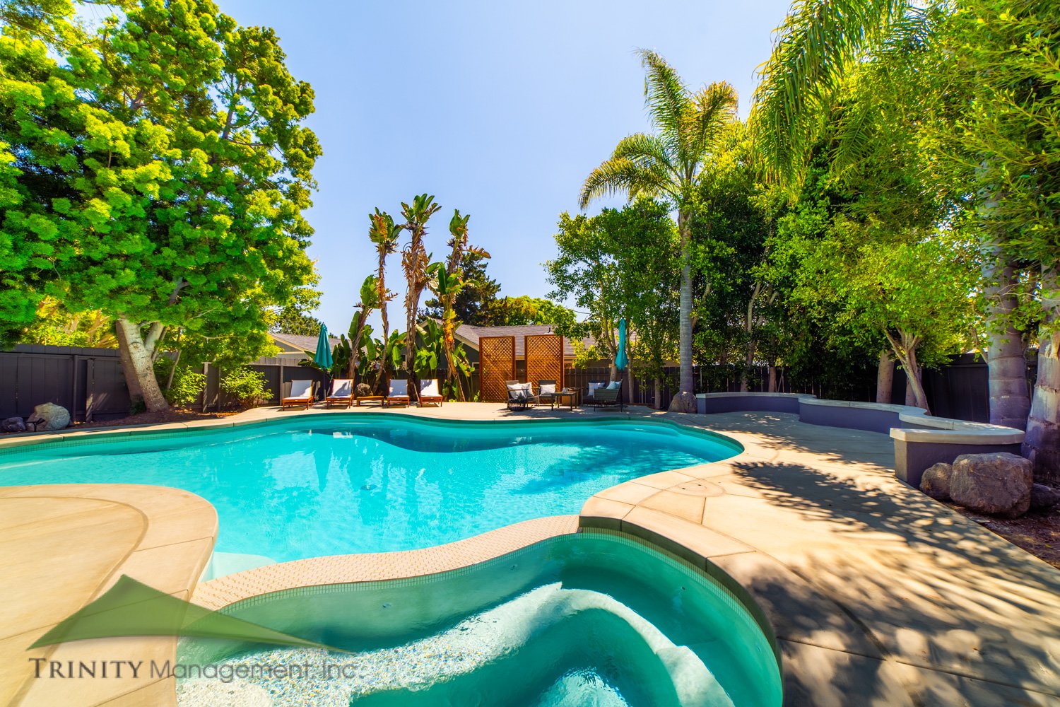 Furnished rental available January 2026. Enjoy the California lifestyle in this gorgeous home perched on top of the hills of beautiful Del Mar. This home is split into three levels with primary suites on both the 1st and 3rd floors. The main level of the home is primed for entertaining with a kitchen that opens to a large deck overlooking the newly remodeled backyard pool and spa. Great schools nearby. Short walk to the walking trails of the Torrey Pines Reserve. Minutes from San Diego's most beautiful beaches, Downtown Del Mar and the racetrack, this home offers an exclusive opportunity to enjoy all of this and more. Solar panels. A/C. Gated entry and 2 car garage.