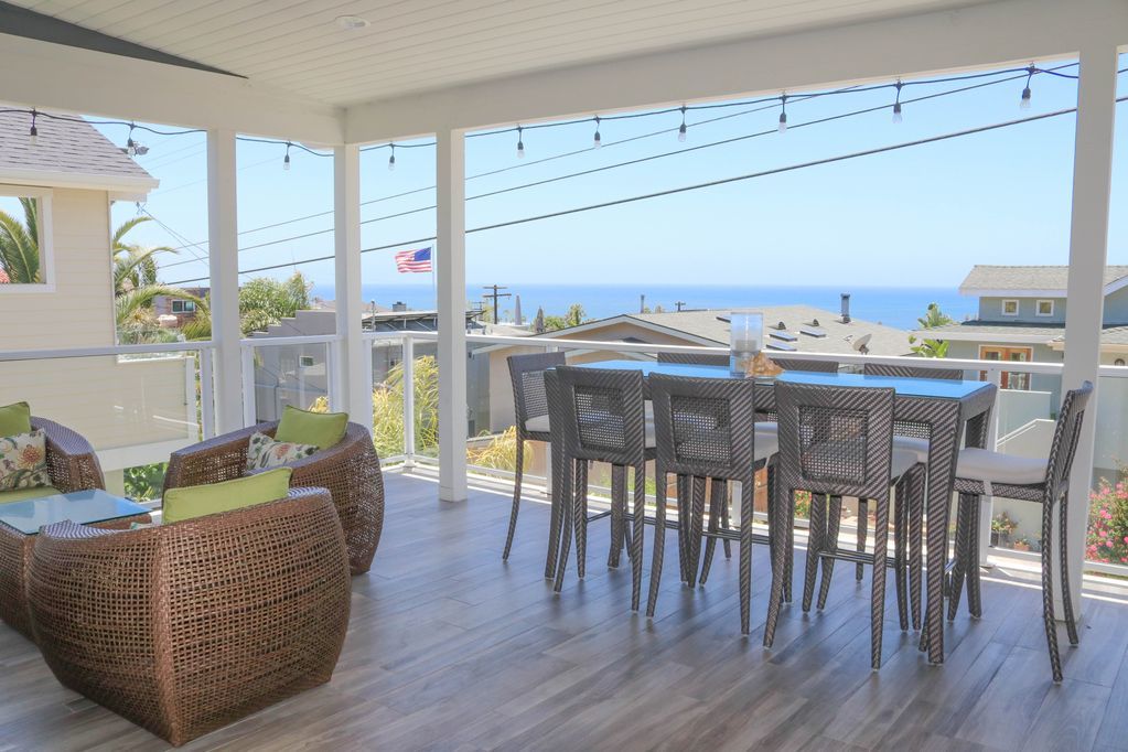Fully furnished available 9/1 through 6/26. Gorgeous craftsman home in Cardiff's Composer district. This home boasts mesmerizing ocean views and was built to entertain. Enjoy seamless indoor / outdoor living year round on the covered patio with bbq, lounging and dining areas perfect for taking in morning coffee, breezy afternoons or an amazing sunset dinner. Walk to the beach or downtown Cardiff for shopping or a dinner out. Create culinary delights while staring at the ocean from the open kitchen with dual ovens and gas range. Immaculate design and functionality in every room! Primary suite with ocean views, custom tile shower, walk in closet and shares access to the deck. Second bedroom / office upstairs with two additional bedrooms and bathroom downstairs. Large 3 car garage and side yard, ideal to clean off after long days at the beach! AC. Beach toys provided for your use.