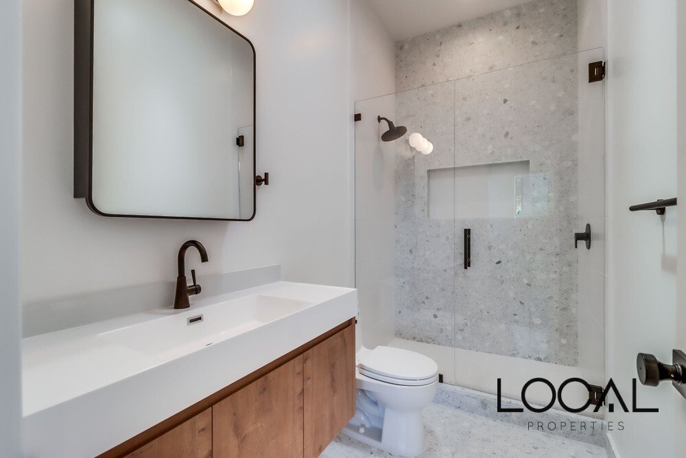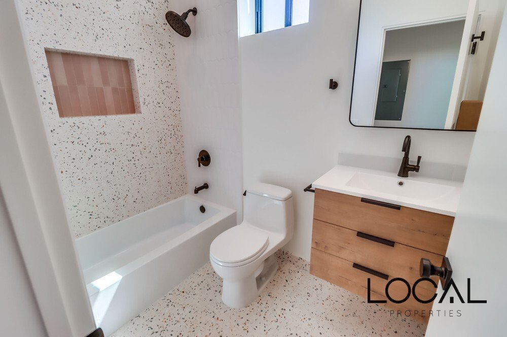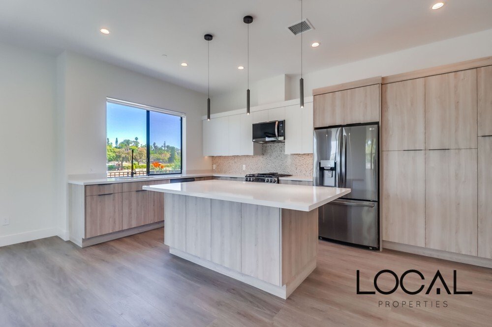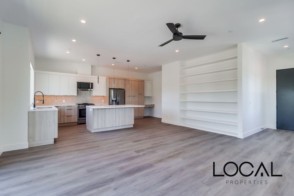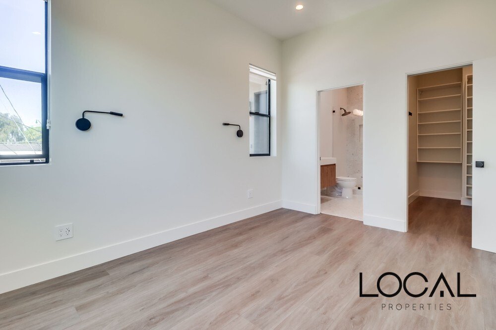 Be the first to live in this stunning new construction home in the heart of Leucadia! This luxury 2 bed / 2 bath property welcomes you with an airy open floorplan, soaring ceilings, and natural sunlight streaming throughout. Gorgeous kitchen featuring a large eat-up island, wraparound cabinetry with abundant storage and sleek modern finishes. The living room has floor to ceiling shelving and access to the front deck, which is the perfect spot for morning coffee in the sun or evening cocktails with friends. Inside, warm wide-plank luxury vinyl flooring runs through the living spaces, complementing the modern coastal design. The primary suite offers a walk-in closet and an en suite bathroom with beautiful custom finishes. Located just a short walk to local beaches, restaurants, and shops and only minutes to downtown Encinitas, this home puts the best of coastal living right at your doorstep.