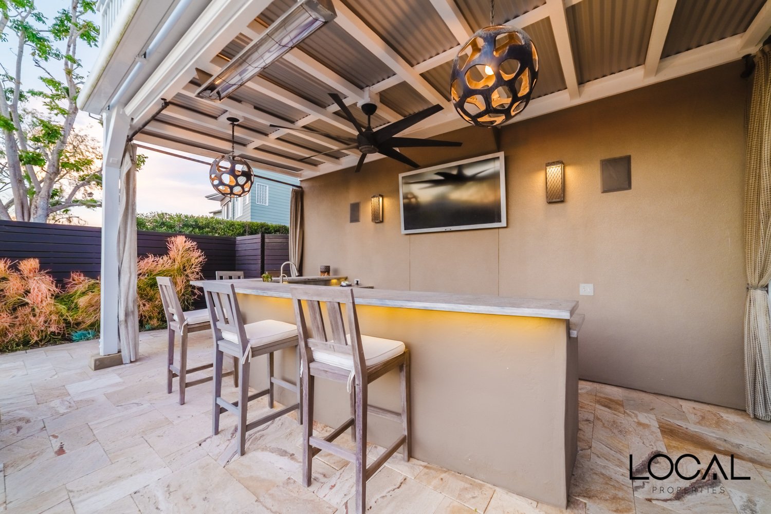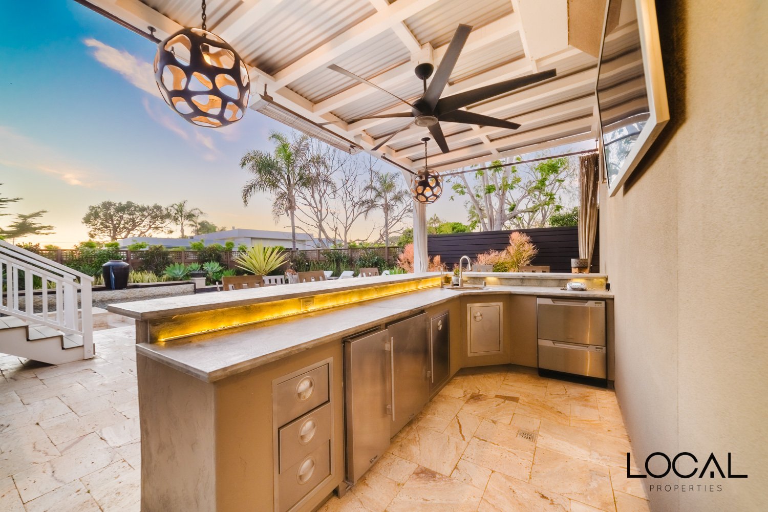 Step outside to your own private resort-style backyard. The expansive ocean-view deck overlooks a sparkling pool and spa, complemented by a fully equipped outdoor kitchen with BBQ, refrigerator, ice machine, dishwasher and an integrated AV system which is perfect for hosting gatherings or enjoying long summer evenings outdoors. Additional features include a two-car garage, solar pool heating, solar electric panels, AC and an outdoor shower for rinsing off after the beach.